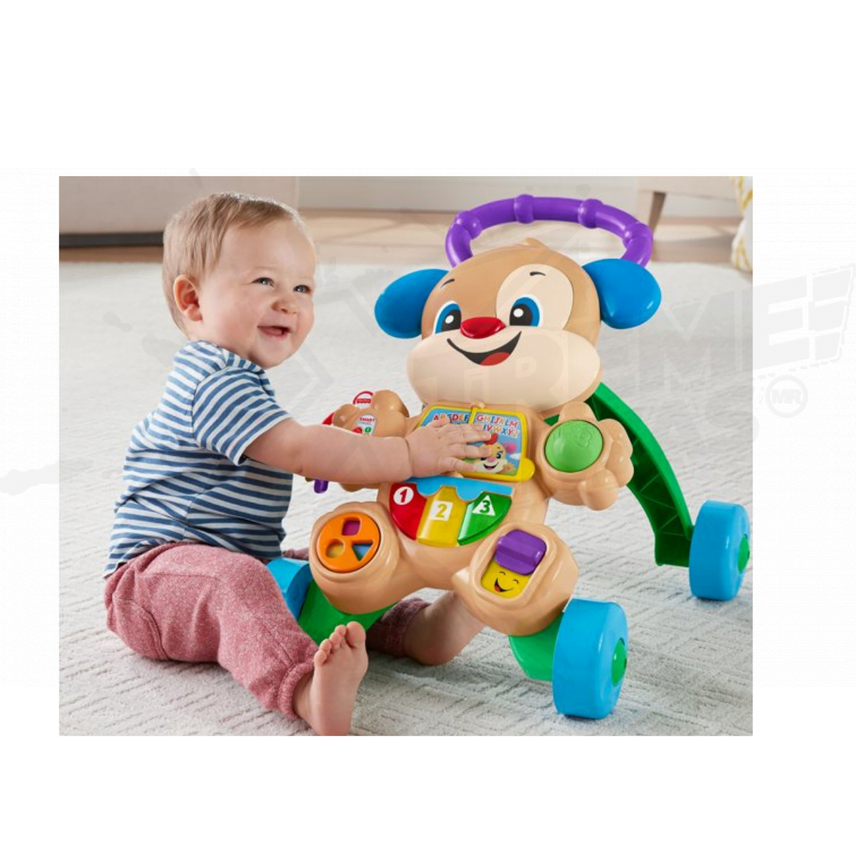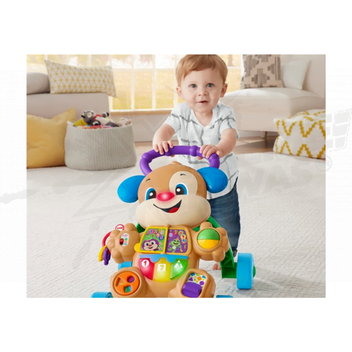 ¡Vamos a dar un paseo, cariño! Las etapas inteligentes de Laugh & Learn Learn with Puppy Walker es el compañero perfecto para su bebé en crecimiento, ya que ofrece emocionantes actividades prácticas para pequeños cuidadores y toneladas de frases alentadoras y apoyo para esos primeros pequeños pasos. A medida que los pequeños crecen y se van, el contenido de aprendizaje de Smart Stages presenta el alfabeto, las formas, los colores, el conteo e incluso las palabras en español. Los pequeños músculos se ejercitan mucho cuando los bebés sentados alcanzan e interactúan con las actividades y luego se levantan para pararse y caminar detrás del andador. A los bebés se les presenta la causa y el efecto a medida que descubren cómo activar la música y las frases presionando los botones o empujando el andador.
