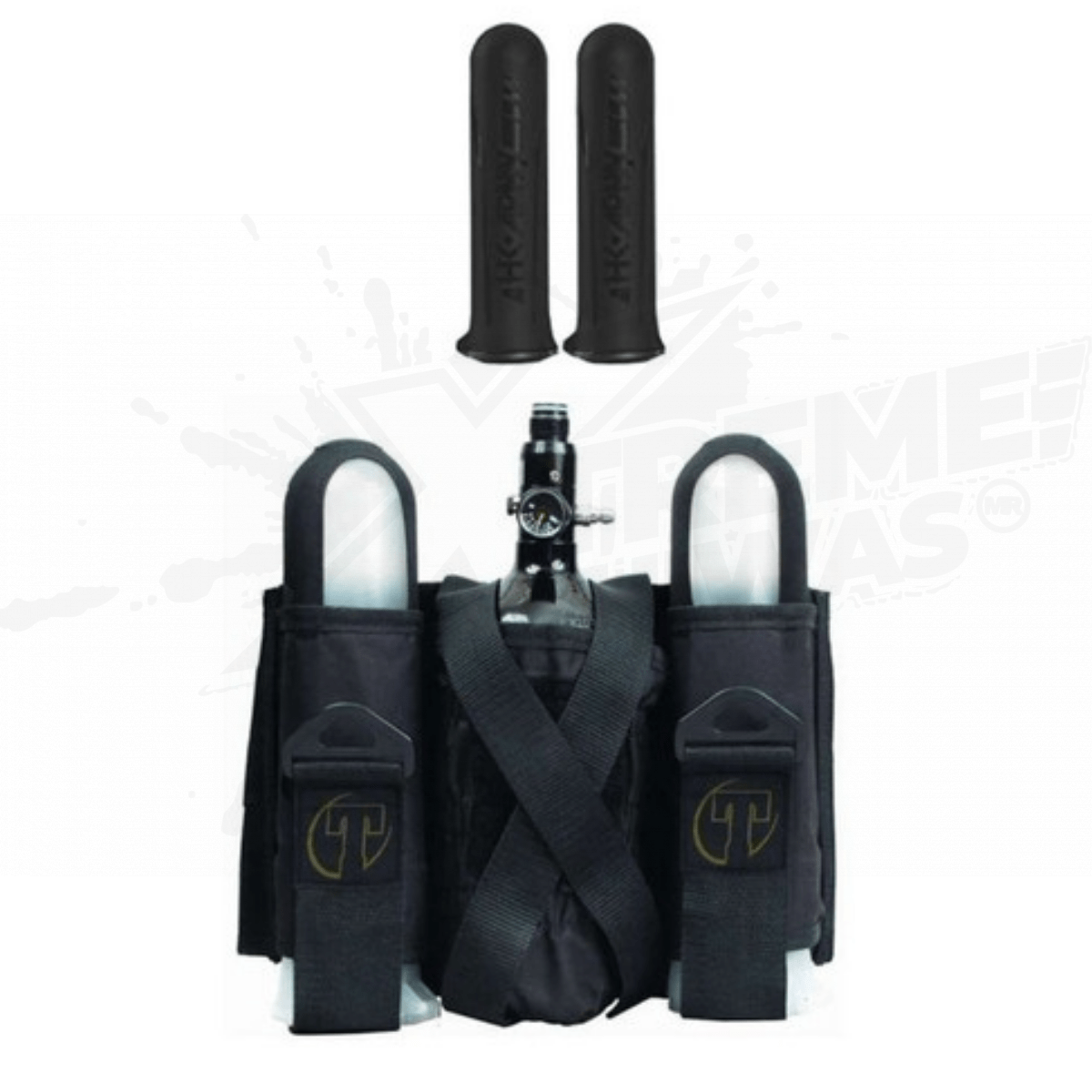 + EnvíoArnés Nxe SP Series 2 + 1 Pod con cinturón – Negro (Tubos de paintball Incluidos) (Tanque no Incluido) El cinturón es ajustable de 24 pulgadas a 44 pulgadas.