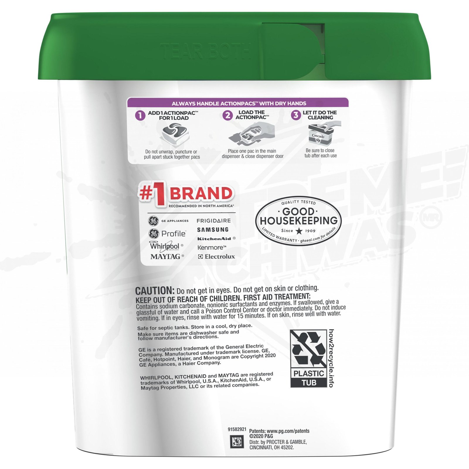 Cascade Platinum + Oxi ActionPacs son nuestros ActionPacs más potentes que proporcionan una limpieza higiénica profunda que puede ver y sentir. Descompone la suciedad de los alimentos para limpiar el 99% de los residuos de alimentos visibles e invisibles * (* de naturaleza inanimada) y los elimina para que no se vuelvan a depositar en sus platos. Además, Platinum + Oxi es nuestro mejor ActionPac para combatir las manchas, que combate las manchas difíciles de alimentos y bebidas para lograr platos prácticamente impecables, en todo momento. Y no contiene blanqueador de cloro. Cascade Platinum + Oxi limpia la suciedad quemada en un solo lavado, sin necesidad de prelavado. Esto se debe a que Platinum tiene un 50% más de poder de limpieza * (*% de ingredientes de limpieza frente a Cascade Complete ActionPacs) para combatir los alimentos quemados. Se disuelve rápidamente para comenzar a limpiar de inmediato, liberando el poder de remojo del líquido lavavajillas Dawn, mientras que las enzimas que buscan alimentos se adhieren y descomponen los alimentos en partículas tan pequeñas que pueden fluir por el desagüe. Es tan potente que incluso funciona en el ciclo de lavado rápido. Además, el detergente para lavavajillas Cascade Platinum está formulado para ayudar a prevenir la formación de películas de agua dura, manteniendo su máquina con un aspecto fresco y limpio. Simplemente introduce un ActionPac y revela un brillo platino. Ahorre hasta 15 galones de agua por carga de lavavajillas cuando omita el prelavado y haga funcionar su lavavajillas con Cascade Platinum. Marca # 1 recomendada en Norteamérica * * Más marcas de lavavajillas en Norteamérica recomiendan Cascade frente a cualquier otra marca de detergente para lavavajillas automático, recomendaciones como parte de los acuerdos de comercialización conjunta.