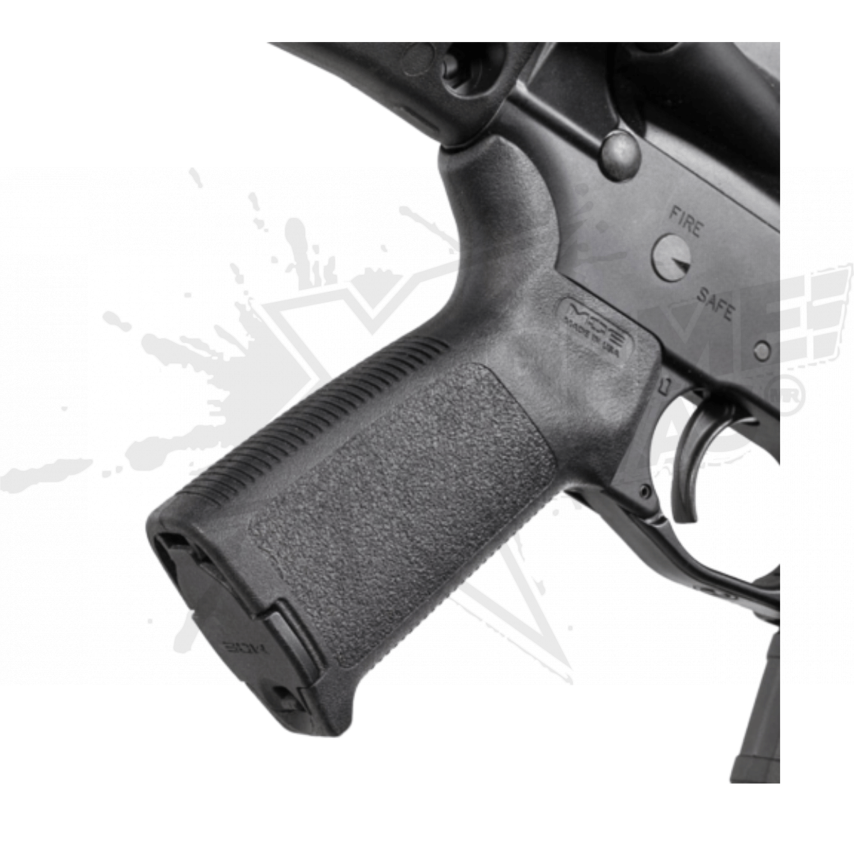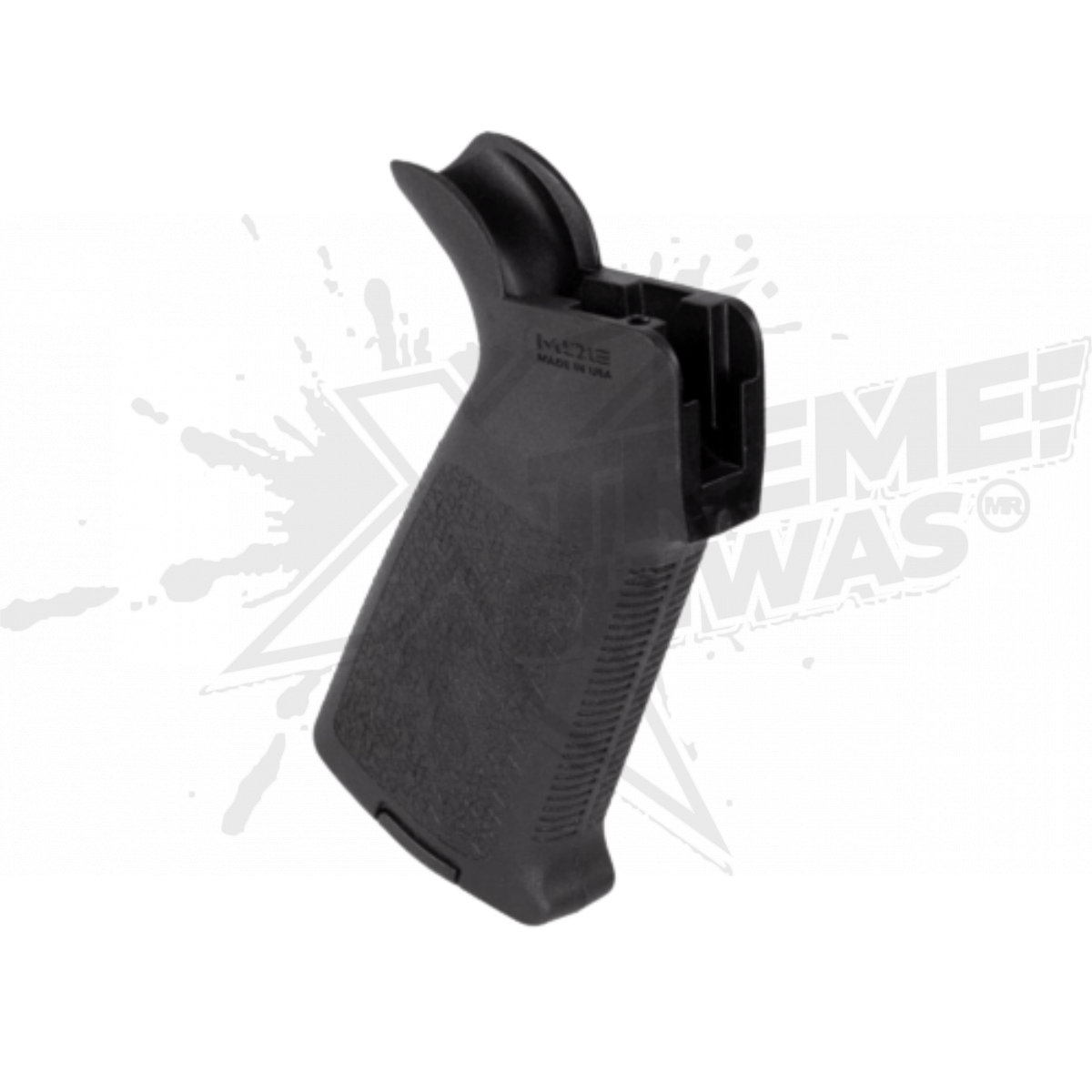 La empuñadura MOE (Magpul Original Equipment) es una mejora para la empuñadura de pistola estándar AR15 / M4. El diseño ergonómico, que llena la mano combina texturizado antideslizante con capacidad de núcleo de almacenamiento. Con una forma similar a la de un MIAD de tamaño “medio”, la construcción en polímero reforzado de una sola pieza proporciona simplicidad y un coste reducido a la vez que mantiene la durabilidad necesaria para soportar entornos operativos. La empuñadura MOE acepta núcleos de almacenamiento opcionales para guardar el equipo e incluye una tapa de empuñadura básica.