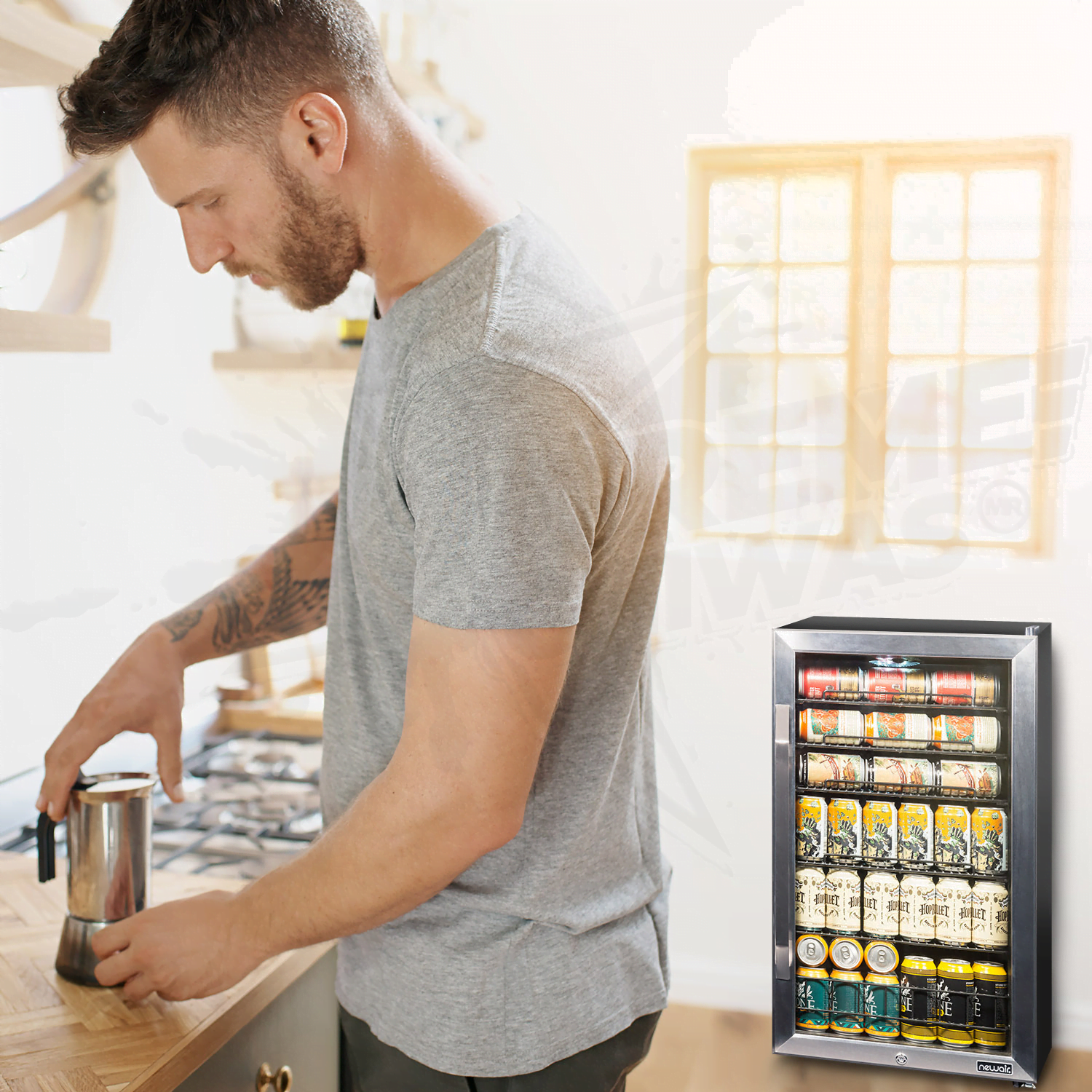 Refrigerador y enfriador de bebidas NewAir Premium de acero inoxidable de 126 latas con diseño de estante dividido, AB-1200X: