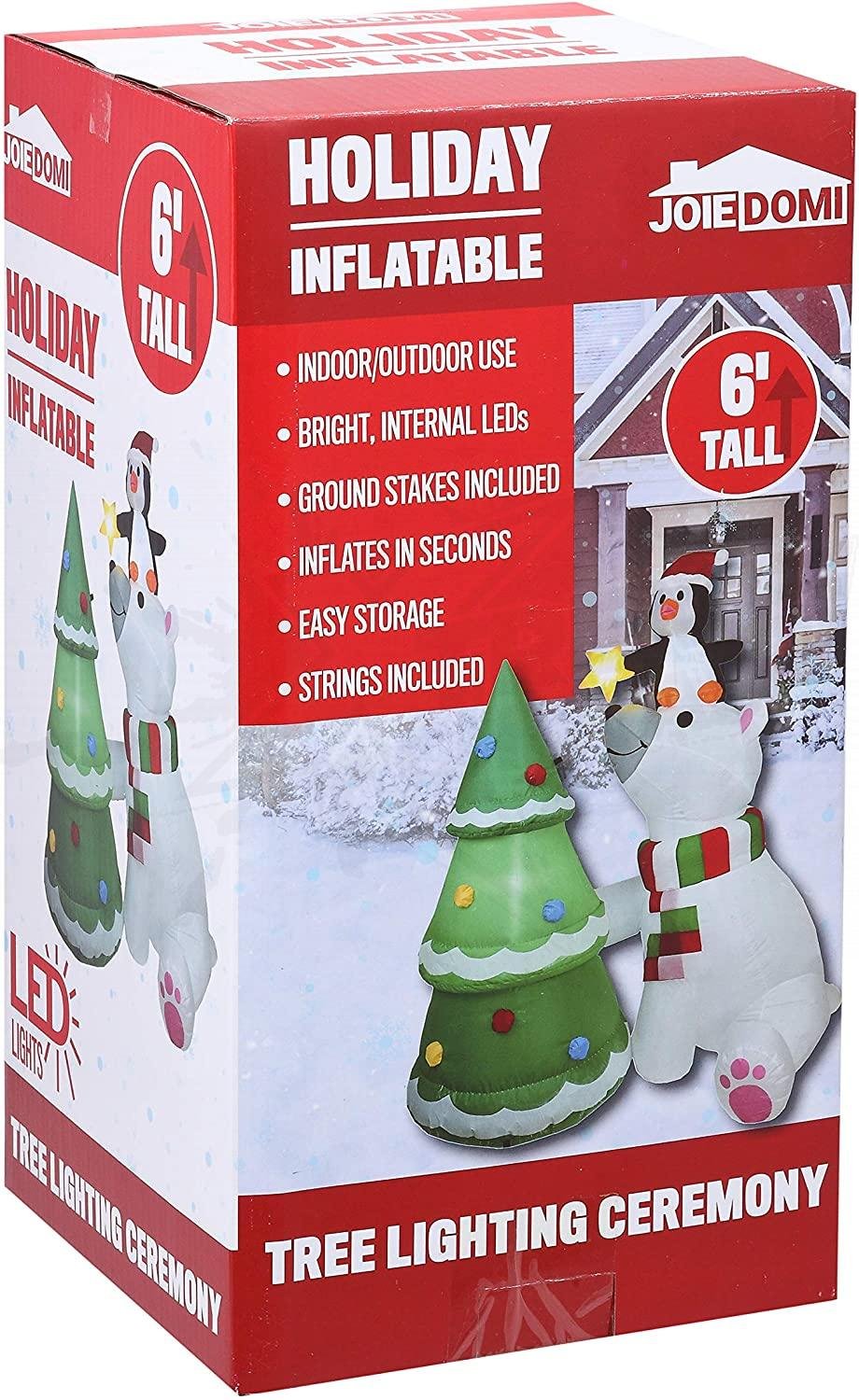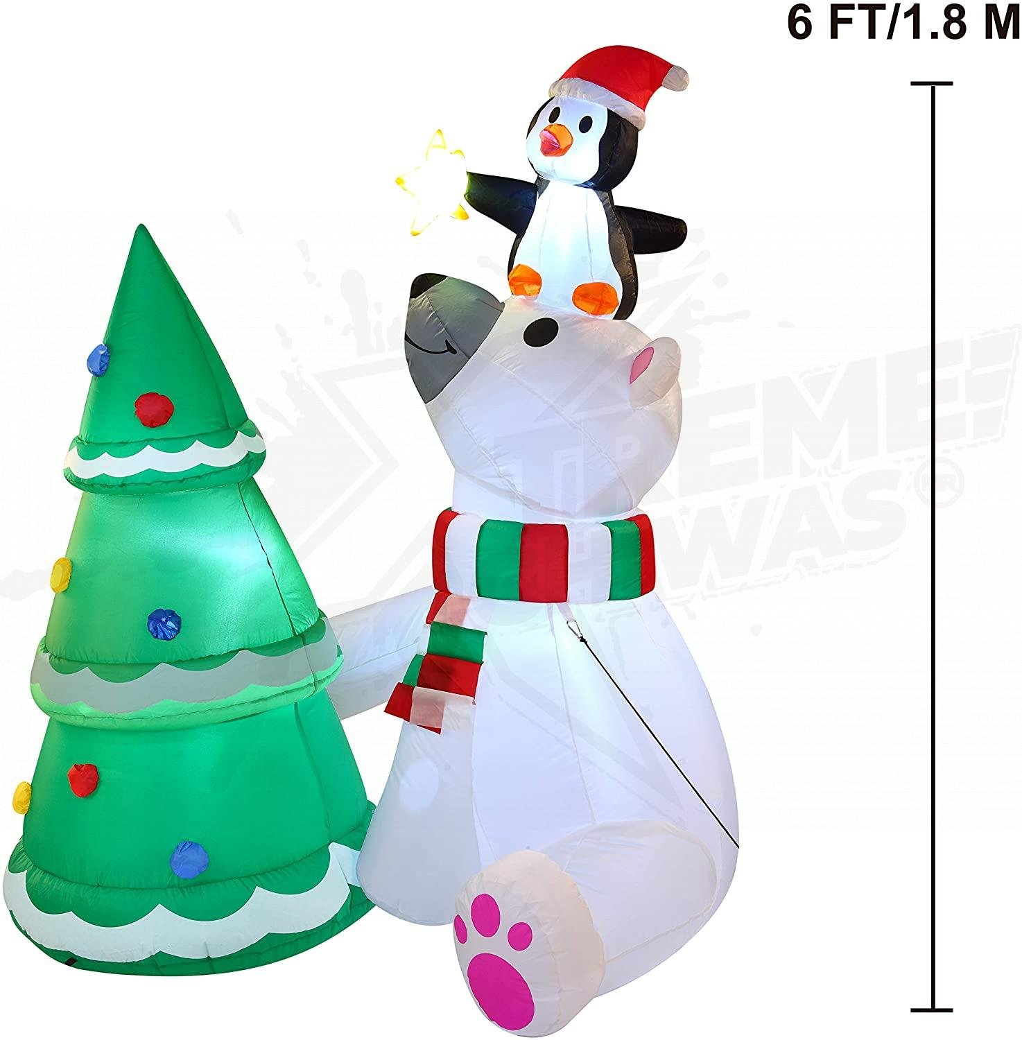 + Envío- Árbol de Navidad inflable de oso polar de 5.9 ft de alto, viene con un cable extendido, estacas de tierra, cuerdas sujetas, bolsas de arena integradas y un enchufe con certificación UL.