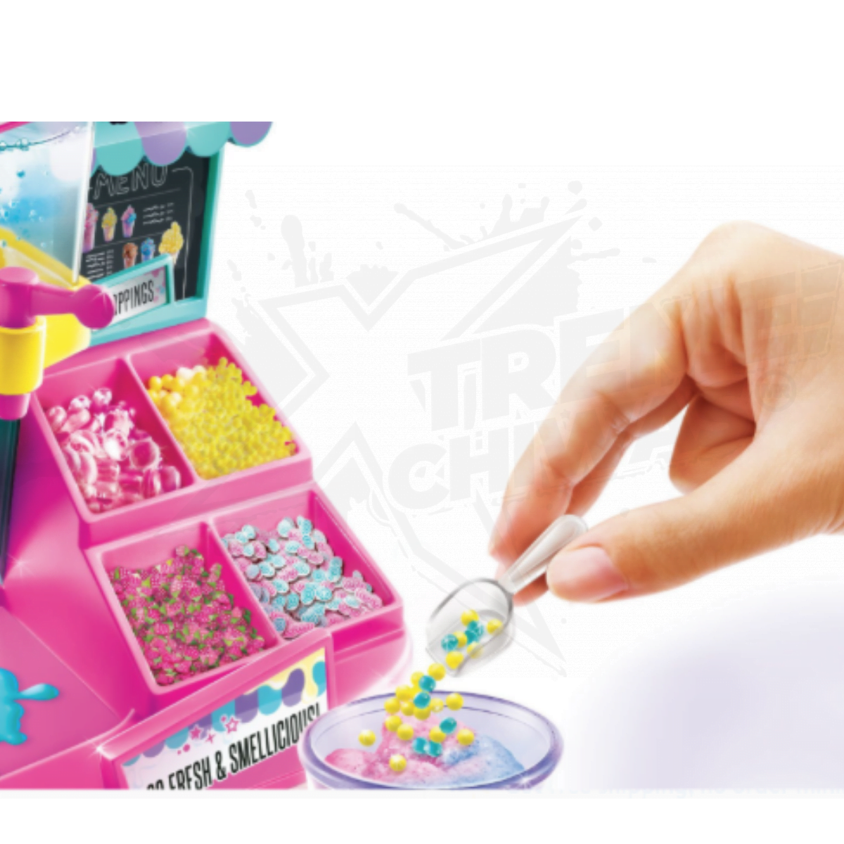 ¡Mezcla tus propios slimes perfumados con esta Slime’licious Slime Station! ¡Este juego hace hasta 16 mini slimes perfumados! ¡Los limos Slime’licious son tan frescos y OLEROSOS! Esta estación de trabajo para hacer slime hace que sea muy divertido y fácil mezclar tus propios mini slimes inspirados en alimentos personalizados sin ensuciar. ¡Crea tus propias recetas de limo perfumado! Incluye todo lo que necesitas … ¡solo agrega agua! No se requiere pegamento. Slime Station incluye 4 mini agitadores de limo estilo parfait y polvo de limo que puede hacer limo de palomitas de maíz, limo de uva, limo de chocolate, limo de goma de mascar o incluso limo de fresa con leche y cereales. ¿Qué limo mezclarás? Simplemente dispense el polvo de limo en el vaso mezclador. Luego agregue unas gotas de su elección de colorantes perfumados. Agregue un poco de agua en el vaso mezclador … luego agite durante 30 segundos. ¡Tu baba está lista en 5 minutos! ¡Mezcla el paquete de decoraciones y disfruta de tu dulce limo aromático! Incluye Slime Station, Slime Powder, 3 botellas de colorante perfumado, mini cuchara, herramienta para mezclar, 7 paquetes de decoraciones, 3 mini decoraciones de pajitas, 4 mini contenedores reutilizables Slime Shaker, 1 hoja adhesiva e instrucciones. Colecciona y crea todos los estilos Slime’licious de So Slime DIY. A partir de 6 años. Hecho en China. Aviso: los colores y estilos de contenido pueden variar. Cumple con ASTM D-4236. No coloque el contenido cerca de los ojos o la boca. Este producto no es un alimento y no debe utilizarse como recipiente para alimentos. No coma ni ingiera su contenido. Lávese las manos después de su uso. El contenido contiene colorantes que pueden manchar ciertas superficies. Lea todas las instrucciones antes de usar. ¡Mezcle sus propios slimes perfumados con esta Slime’licious Slime Station!