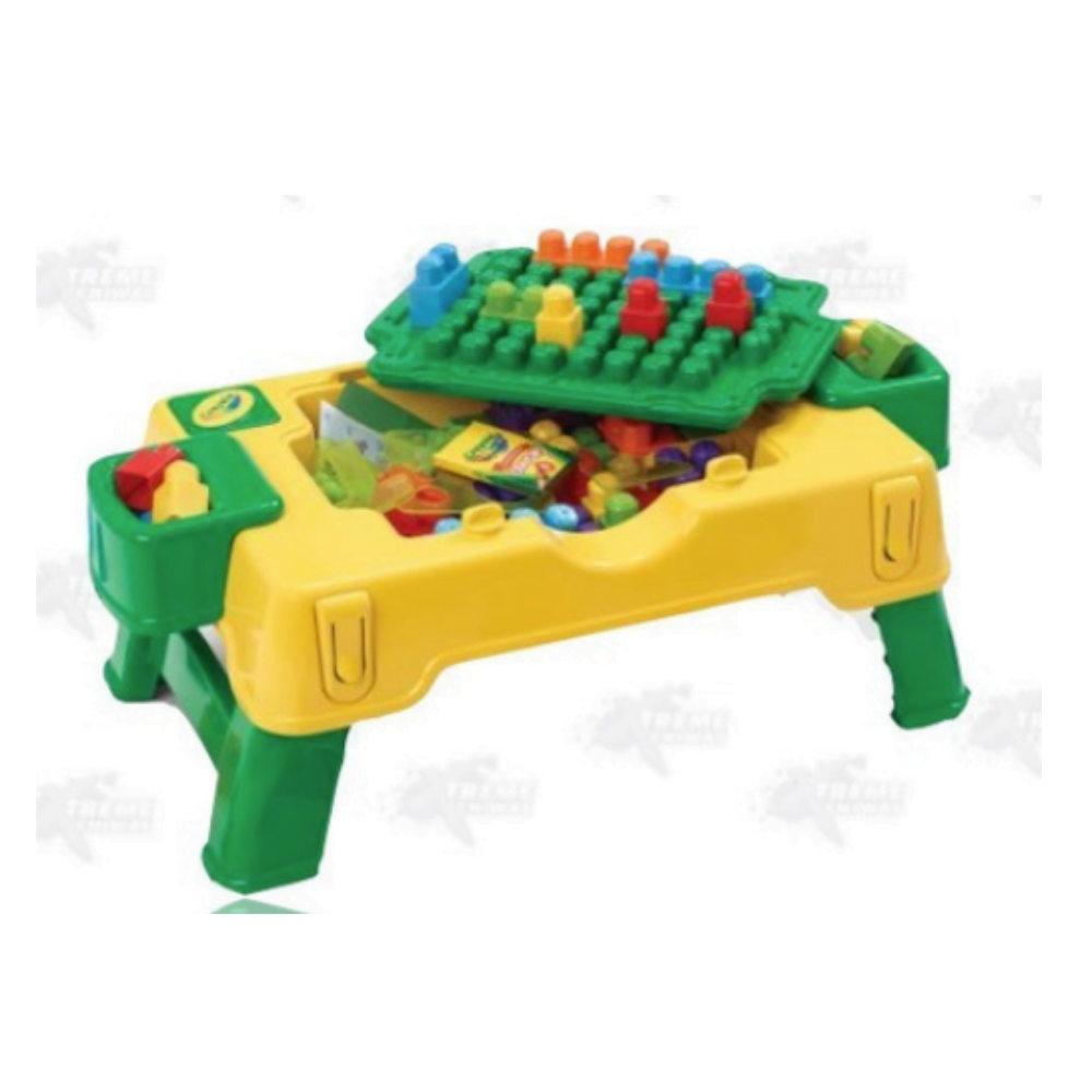 Crayola Kids ofrece a los más pequeños múltiples formas de expresar su creatividad. Una sección central reversible tiene una superficie plana para dibujar en un lado y una superficie de construcción en el otro. Los niños pueden unir los 20 bloques de construcción aquí para crear varias estructuras. También hay papel y crayones para dibujar y colorear, e incluso una plantilla y t-cuadrado para hacer formas precisas. Los bolsillos de almacenamiento en el lateral de esta mesa de actividades de Crayola sostienen bloques y otros elementos.