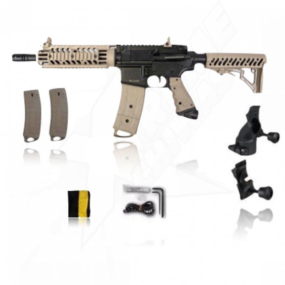 • Marcador de bola de pintura TIPPMANN TMC MAGFED .68 CALIBER SCENARIO – Semi-automático – Ajustable desde 250-325 FPS – Incluye (2) 20 revistas redondas impulsadas por resorte – Opción de alimentación dual: diseño Hopper o Magfed – 12 pulgadas barril de alto rendimiento – Línea de gas interna de acero inoxidable – Visores ajustables delanteros y traseros – Rieles Picatinny integrados