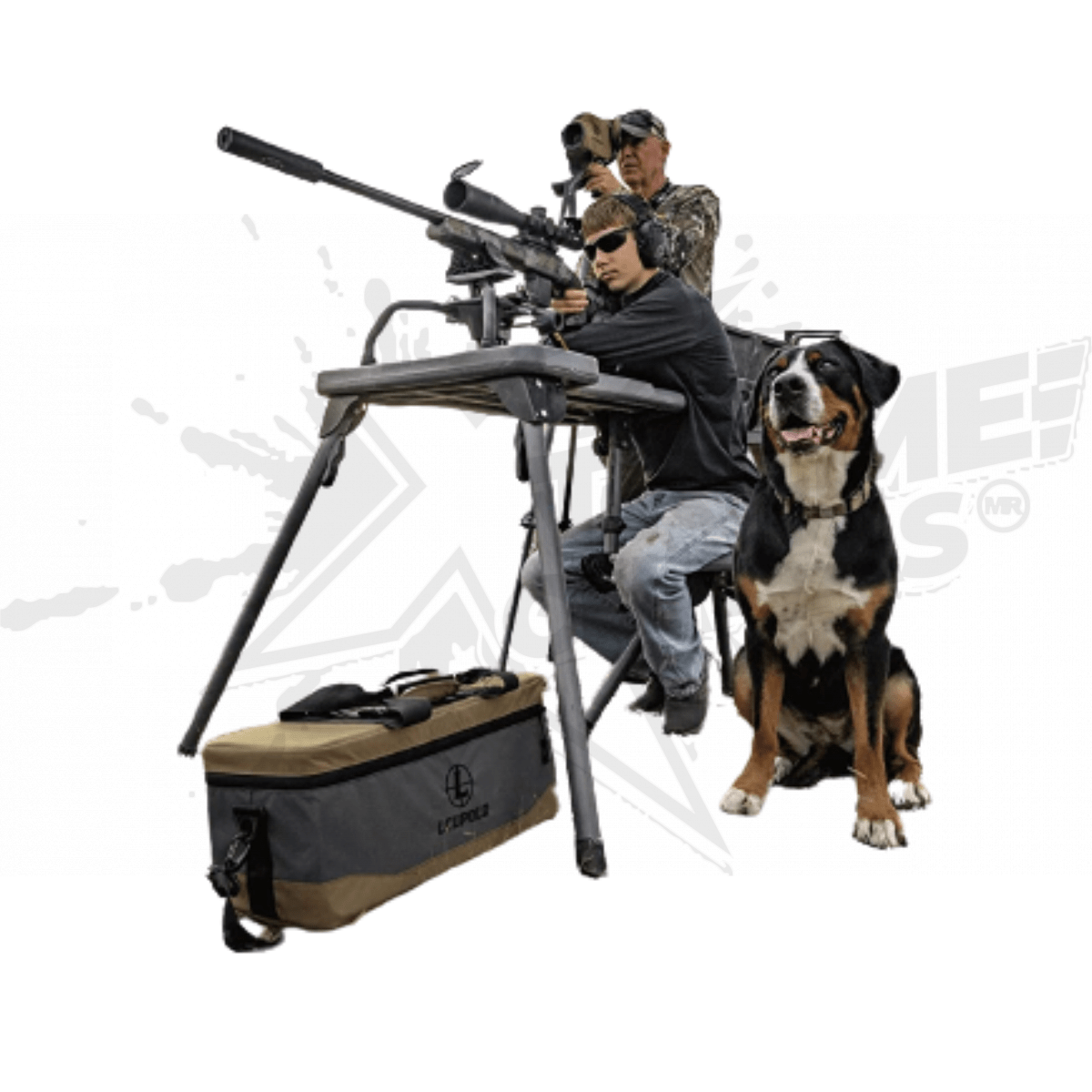 MESA DE TIRO CALDWELL CON TABLERO RESISTENTE A LA INTEMPERIE, ASIENTO AMBIDIESTRO Y DISEÑO TOTALMENTE PLEGABLE PARA FACILITAR EL TRANSPORTE Y EL TIRO AL AIRE LIBRE.