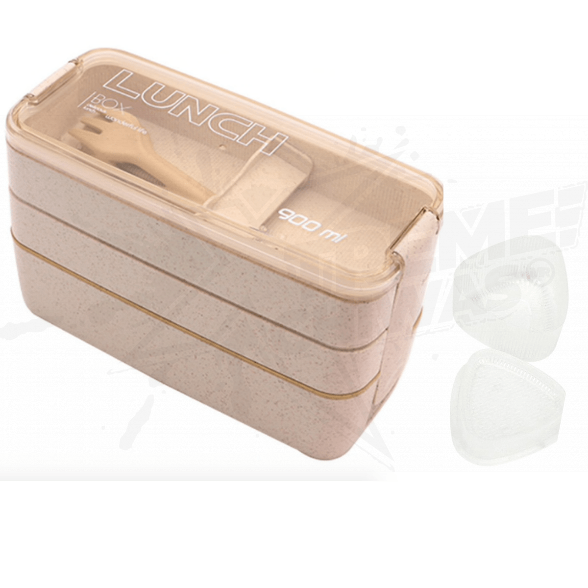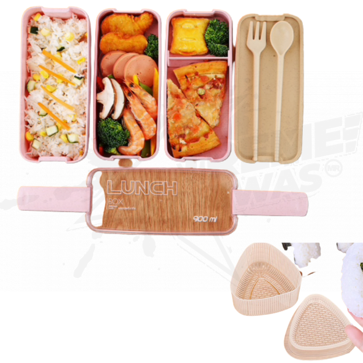 Lonchera de plastico color rosa, con tres divisiones, molde de plástico para hacer sushi