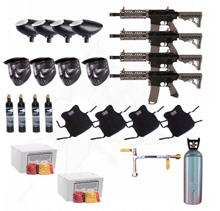 Paquete Campo 4 Marcadoras Tippmann TMC Tanque Hopper Chaleco Careta Pintura Tanque Madrina
