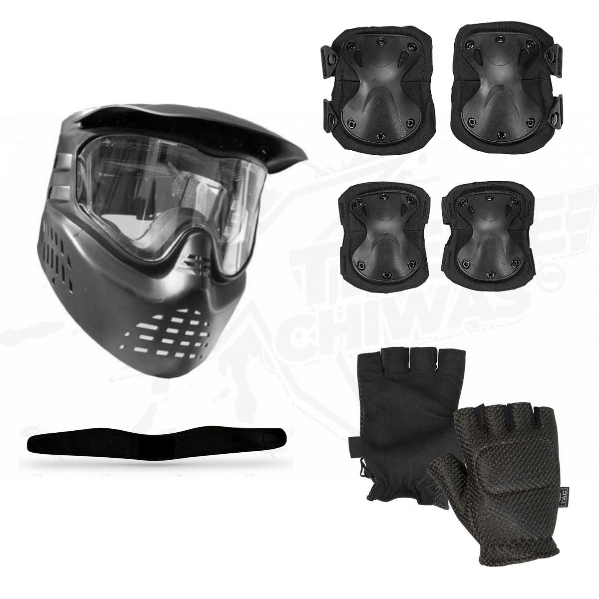 Paquete Careta Gen Global Rodilleras Guantes Tácticos con Cuellera