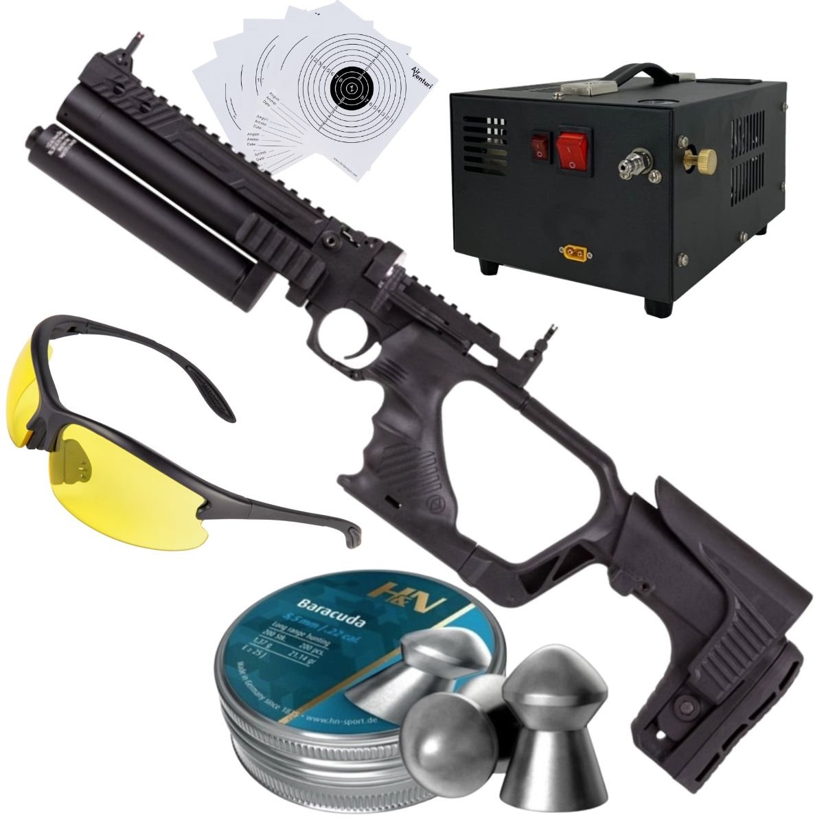 Pistola PCP .22 Convertible Hatsan Jet II c/compresor, pellets, lentes, targets.Pistola PCP .22 Convertible Hatsan Jet II c/compresor, pellets, lentes, targets.
