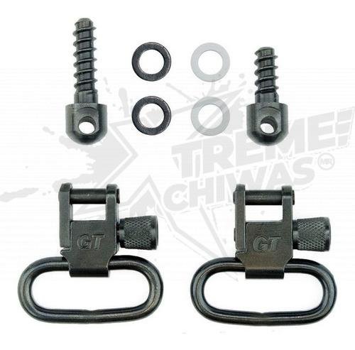 El juego incluye perno giratorio de extremo delantero con tornillo para madera de 1/2″, tornillo trasero para madera de 3/4″, espaciadores y un par de eslabones giratorios con bloqueo GT.