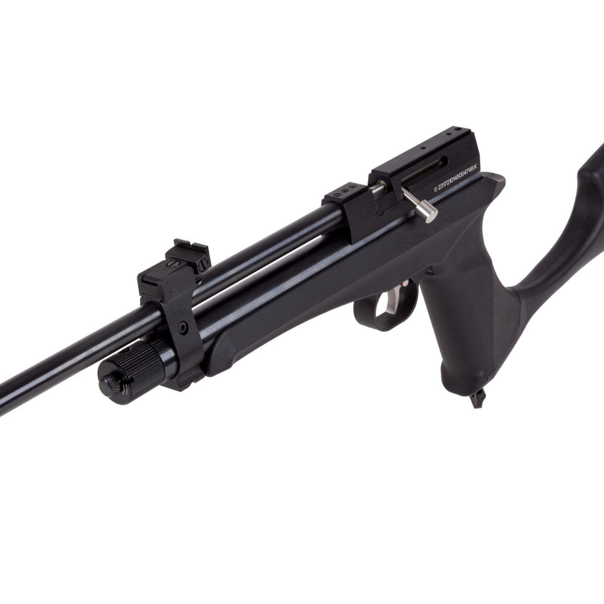 Disponible .22, Diana tenía en mente a los tiradores de todas las edades con el peso ligero como una pluma de 3.1 lbs. ¡Pero que no te engañe su complexión ligera! El Chaser es un plinker capaz y un golpeador de objetivos que puede enviar sus rondas hacia abajo a velocidades de hasta 500 fps en calibre .22. Para comenzar a disparar, primero decida si desea usar la pistola Chaser o transformarla en un rifle de aire modular. Para convertir la pistola en un rifle, afloje los tres tornillos de fijación que sujetan el cañón y saque el cañón de la recámara. Inserte el cañón moderado del rifle de 17,7” en la recámara y apriete los tornillos de fijación. Retire la tapa de la empuñadura de pistola desenroscando el tornillo de seguridad en la parte inferior de la empuñadura y deslizando la tapa fuera de la empuñadura. Luego inserte la culata en los orificios de la empuñadura y vuelva a colocar el tornillo de seguridad. Una vez que esas partes estén en su lugar, estará listo para cargar y eslingar el plomo. Como beneficio adicional, el cañón alargado tiene el beneficio adicional de aumentar la velocidad del perdigón entre 35 y 40 fps con respecto a la de la pistola.