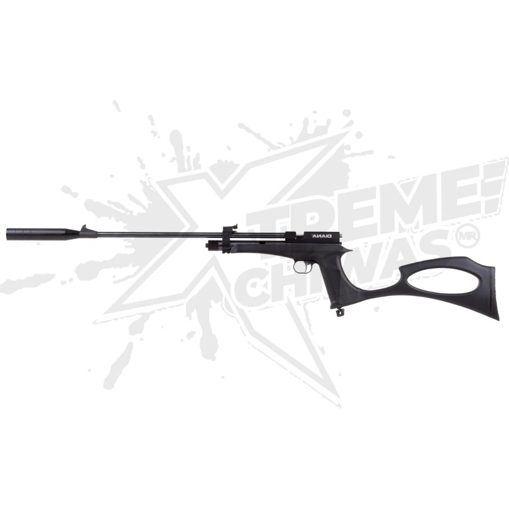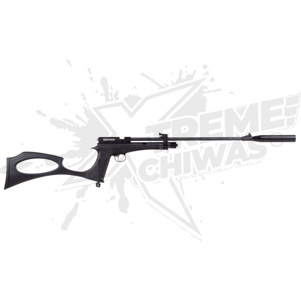 ¡El Diana Chaser Rifle Kit es una pistola y un rifle en uno! Esta pistola de aire de CO2 liviana fue diseñada para horas de diversión al aire libre o como una pistola ideal para interiores. Impulsado por un solo cartucho de CO2 de 12 gramos, el Chaser es una plataforma modular finamente equilibrada que le permite elegir si una pistola o un rifle se adaptan mejor a su tiempo de disparo.