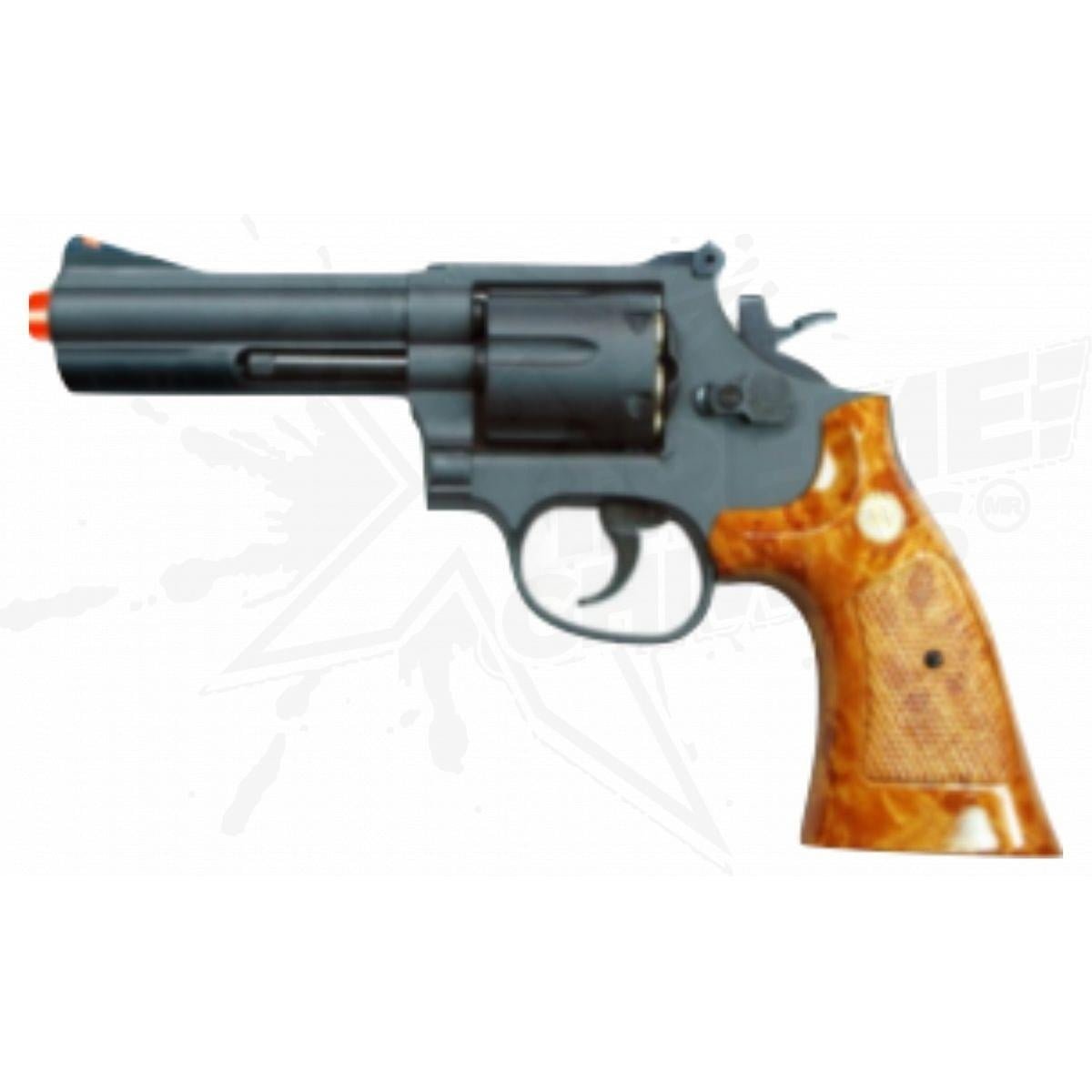 ¡Este revólver de airsoft realista usa gas para enviar bolas de airsoft volando! Cargue sus seis proyectiles de airsoft en el cilindro como si fuera real y dispare en semiautomático. Construido para horas de diversión en el patio trasero, este revólver puede ser una excelente manera de aprender a disparar tácticamente.