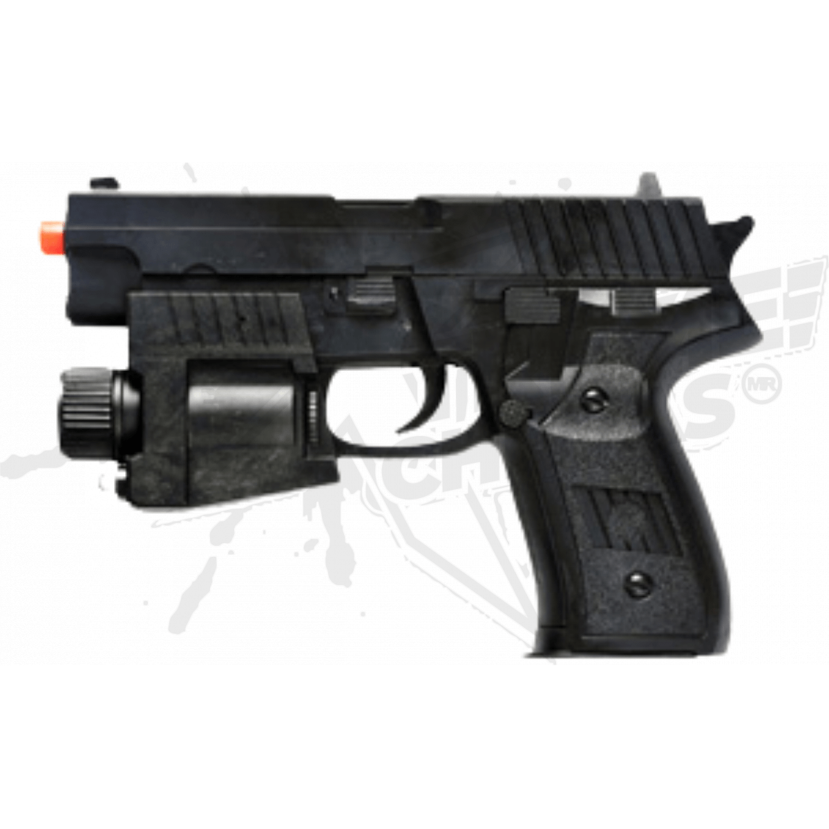 Funcionamiento del rifle: accionado por resorte (para cebar el rifle, tira de la manija de carga)