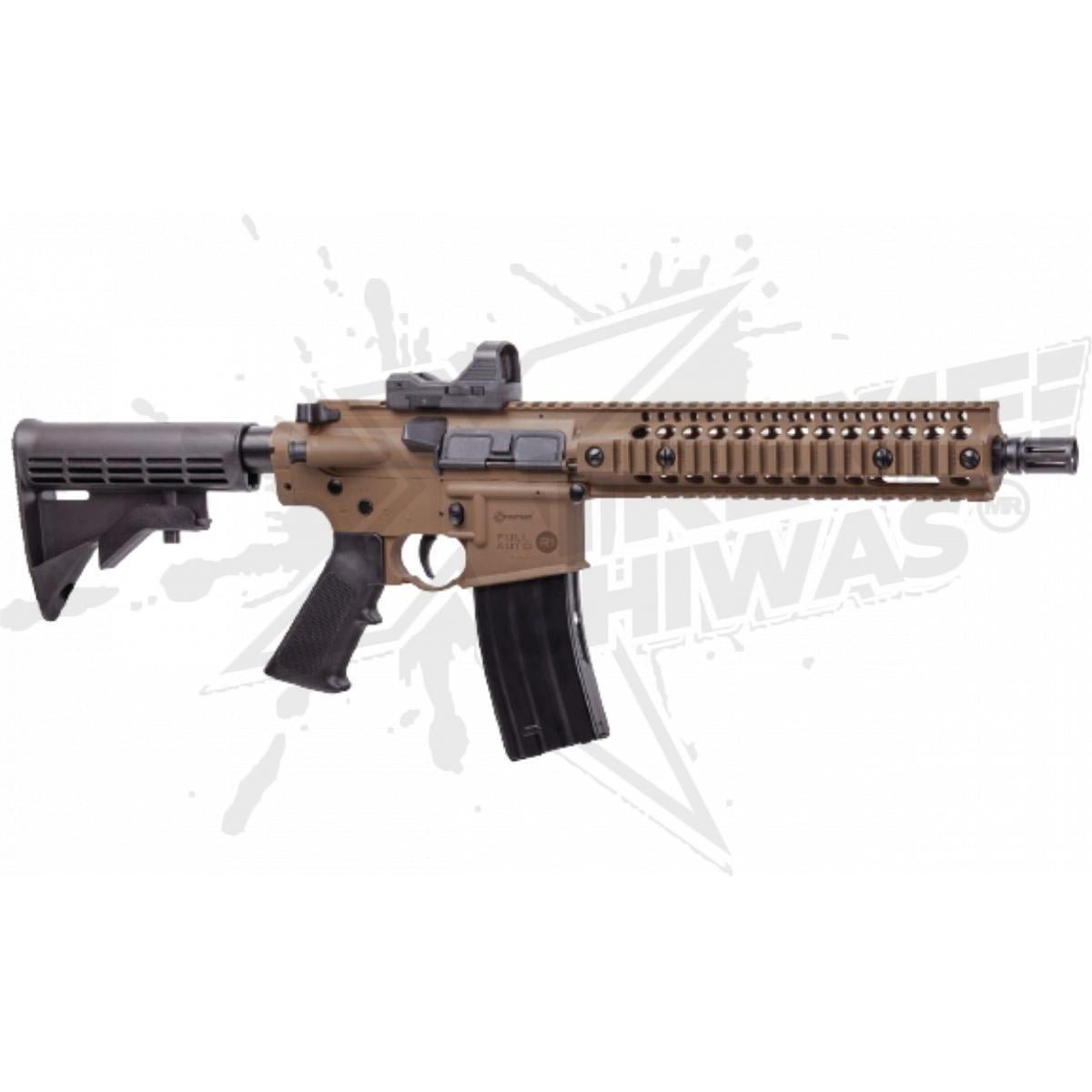 Si ya está familiarizado con la plataforma de RA de combustión de pólvora, esta también es una opción más silenciosa y económica que le encantará. Este rifle de CO2 incluye una mira de punto rojo extraíble que se monta en el riel superior Picatinny, pero puede usar cualquier combinación de visor, luces, bípodes y otros accesorios en los rieles de antebrazo cuádruples Picatinny en el guardamanos.