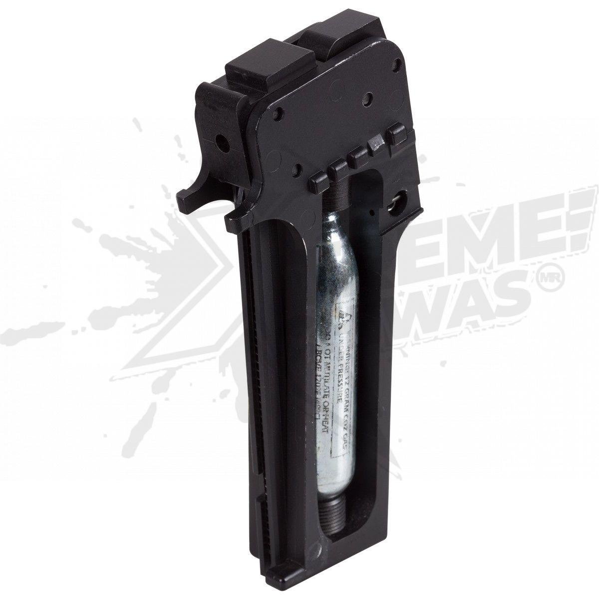-Un cartucho de CO2 de 12 gramos cabe en el cargador