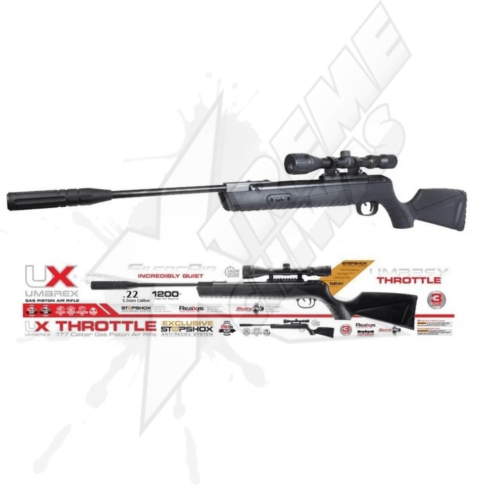 El Umarex Throttle es el primer rifle de aire que incluye el sistema de reducción de vibraciones StopShox. StopShox es un dispositivo innovador pendiente de patente diseñado específicamente para absorber golpes, vibraciones y retroceso en rifles de aire comprimido. Funciona en conjunto con una acción flotante para crear una combinación única que reduce sistemáticamente el impacto creado por el resorte de un rifle de aire comprimido o el sistema de potencia del pistón de gas.